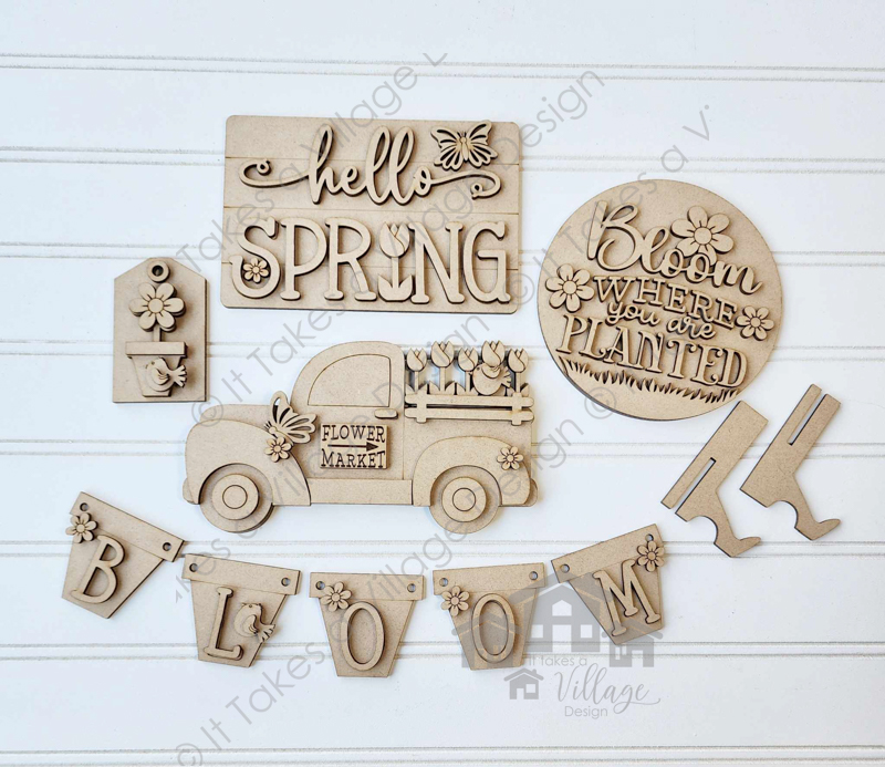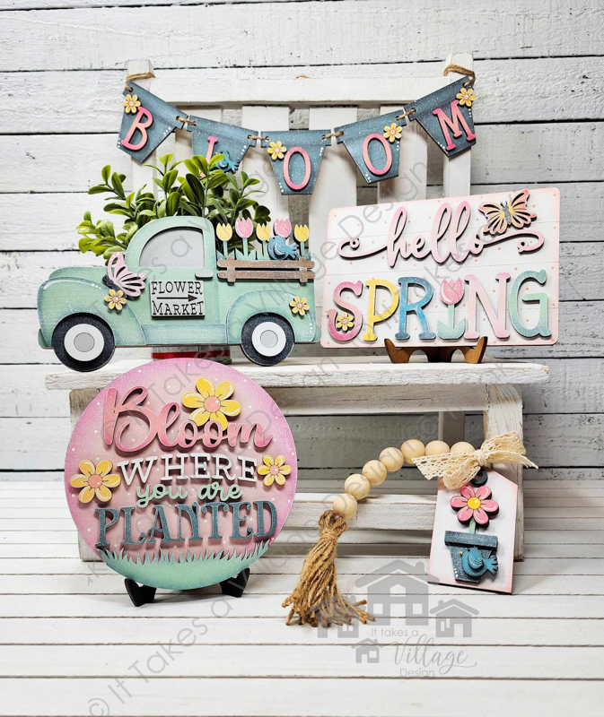 Hello Spring Tiered Tray Set (string beads and bench not included)