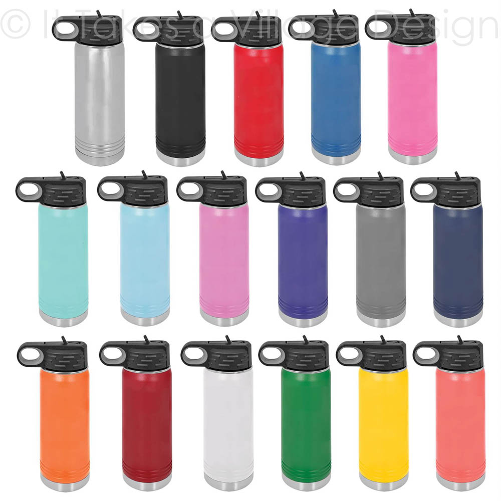 Stainless Steel Polar Camel Water Bottles feature double-wall vacuum insulation with a black flip top lid.
